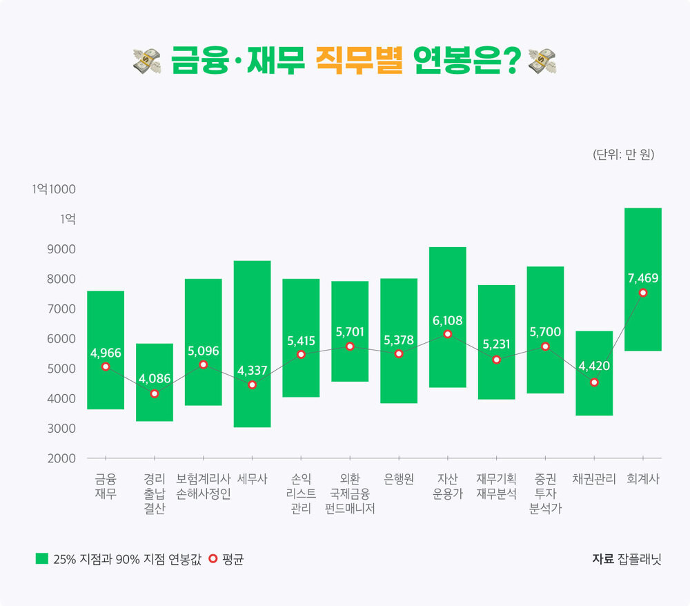 평균연봉이 가장 낮은 금융 직무는 경리로 4086만원을 받았습니다.