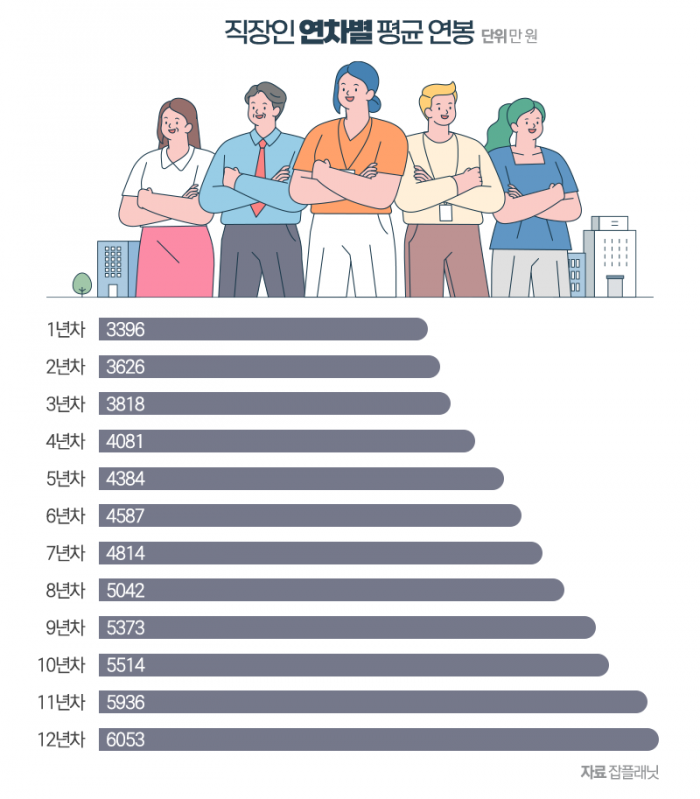 직장인 연차별 평균 연봉 순위가 공개되었습니다.
