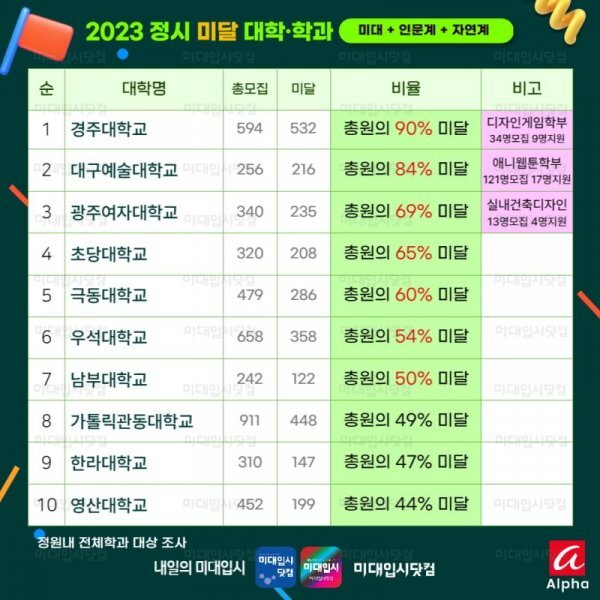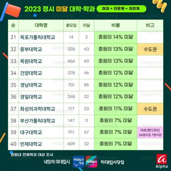 이 뿐만 아니라 대학교에서 대규모의 미달 사태가 발생하였는데요.