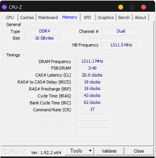 그리고 메모리탭에서는 16GB가 듀얼채널로 장착된 것을 확인할 수 있습니다.