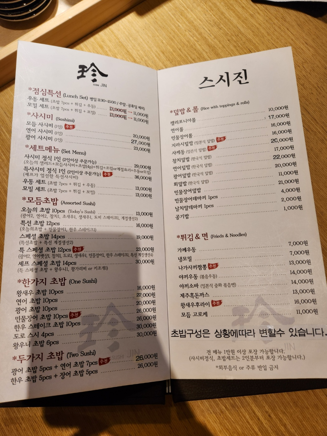 스시진 메뉴