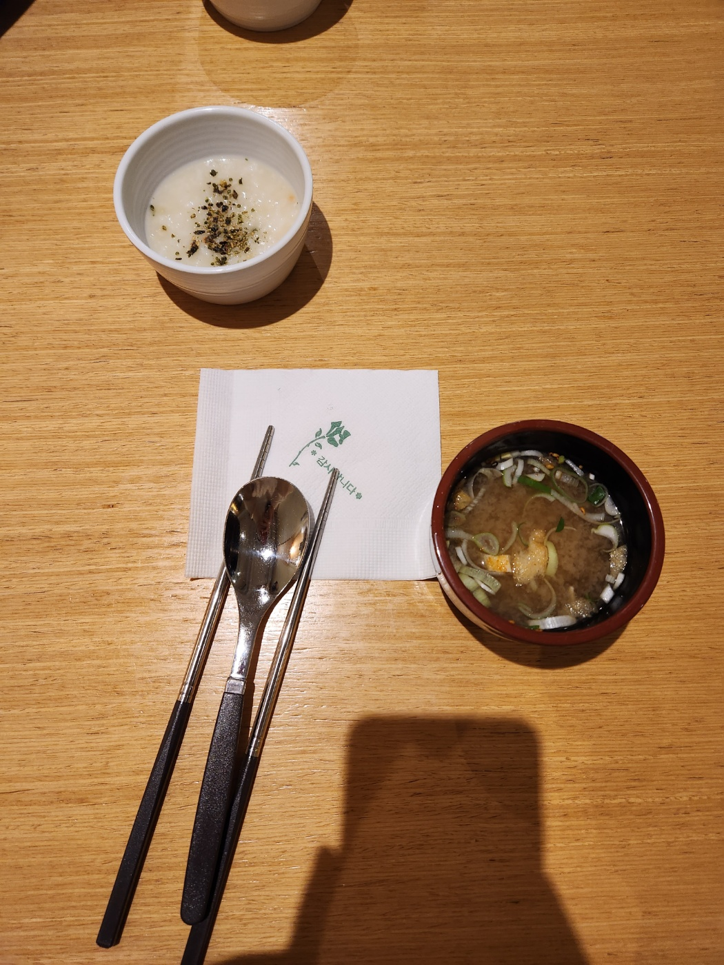 메뉴를 시키면 간단한 죽과 미소국이 나옵니다.