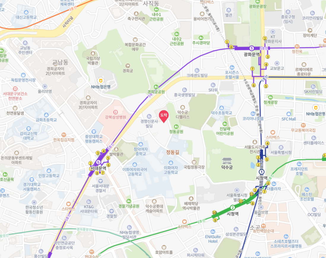 역에서는 조금 거리가 있는데요. 서대문역 5번출구에서 가장 가깝고