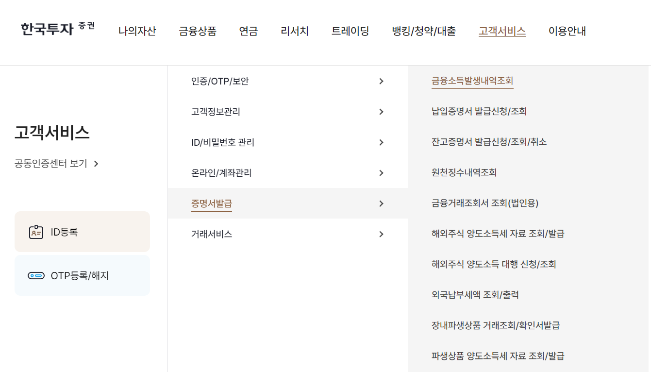 한국투자증권에서 연간 금융 소득 확인하는 방법을 알아보겠습니다.