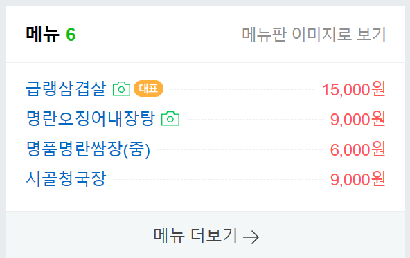 주요 메뉴는 급랭삼겹살이 15000원입니다.