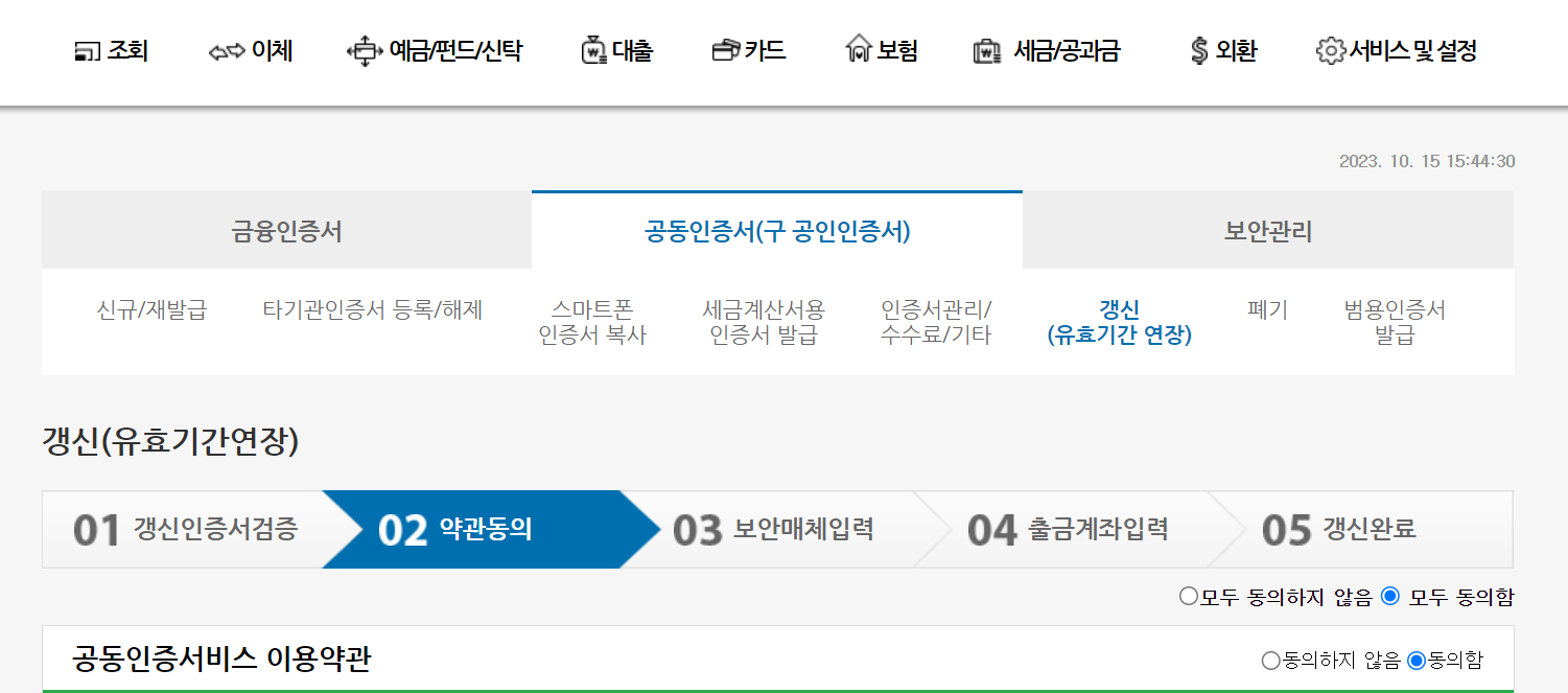 약관을 동의하고 보안매체 정보를 입력한뒤 갱신이 완료되는데요.