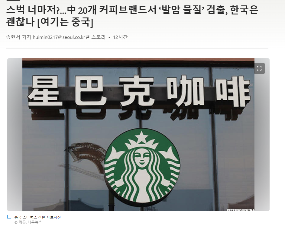 중국 현지에서 판매되는 커피 브랜드 수십 곳의 커피에서 ‘발암 가능 물질(아크릴아마이드)’이 검출돼 당국이 조사에 나섰다고 합니다.