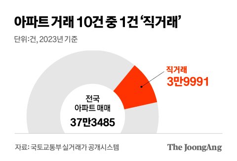 국토교통부에 따르면 지난해 전국 아파트 매매계약 37만3485건 가운데 직거래는 3만9991건(10.7%)으로 조사됐습니다. 10건 중 1건꼴로 직거래가 성사된 것이라고 할 수 있습니다.