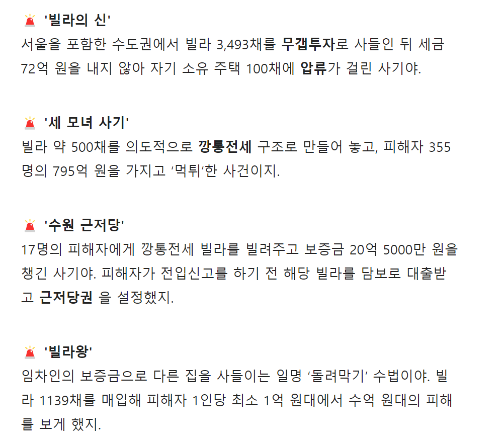 빌라의 신, 세 모녀 사기, 빌리왕 등 여러 갭투자 및 전세 사기로 인한 범죄가 많이 발생했는데요.