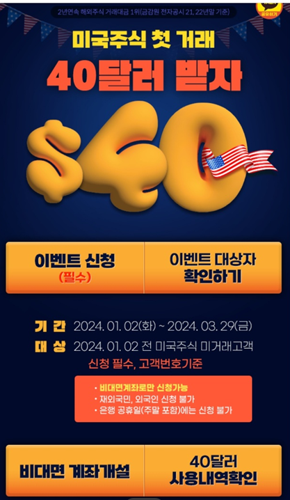 키움증권에서 미국주식 첫 거래시 40달러를 주고 있습니다. 첫거래만 하면 40달러를 바로 넣어주는데요.