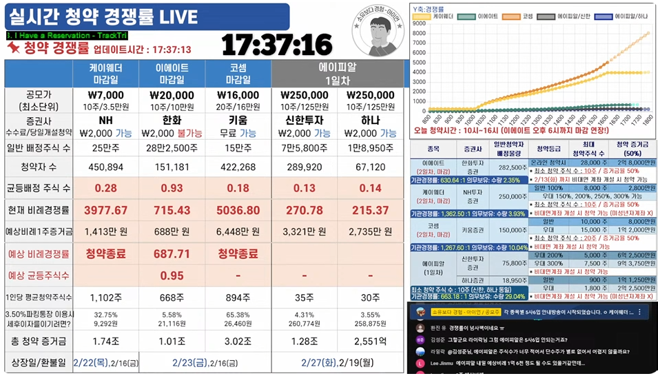 신한투자증권의 청약주식수는 1083만5860주이며 균등주식수 0.13주, 경쟁률 142.95대 1, 증거금은 1조3545억원이다. 하나증권의 청약주식수는 216만4530주로, 균등주식수는 0.14주이며 경쟁률 114.22대 1, 증거금은 2706억원으로 집계됬습니다.
