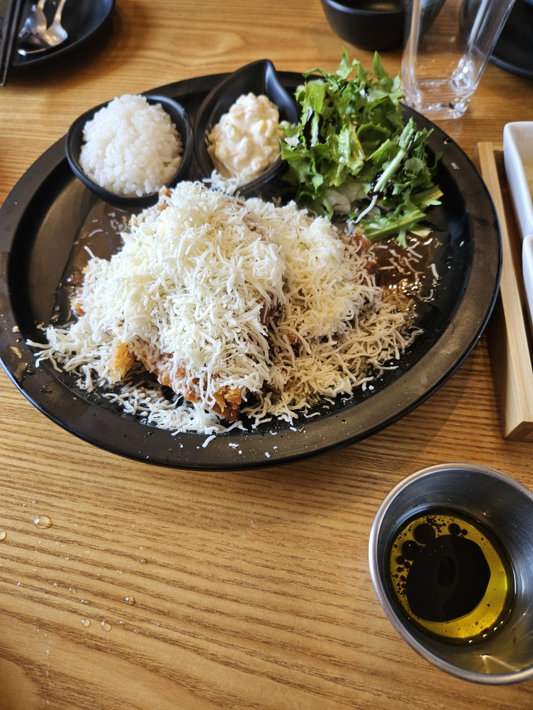 처음으로 식전빵 그리고 이어서 나온건 돈가스였습니다.