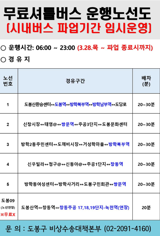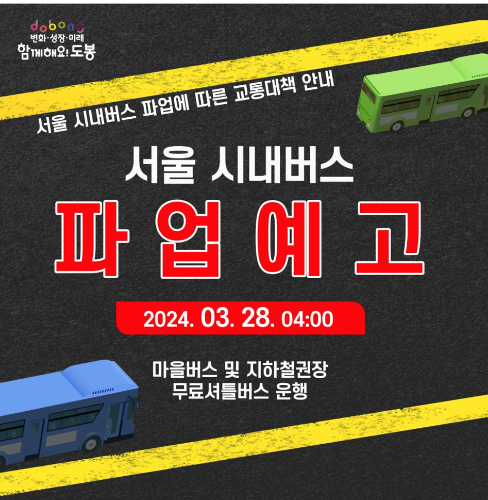 현재 서울시는 시민의 불편을 최소화하기 위해 비상수송대책을 가동한다고 합니다. 지하철역과 연계를 위해 25개 자치구에서 무료 셔틀버스 480대를 투입할 예정인데요.