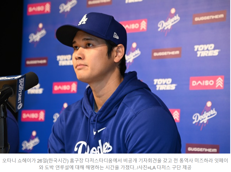 다만 이 과정에서도 석연치 않은 상황이 있는데요. 오타니가 미즈하라에게 거액의 빚이 있다는 사실도 처음 알려진 것(지난해 알게 돼 빚을 대신 갚아줬다는 입장)과 달리 서울에서 알게 됐다고 말이 바뀌었습니다.