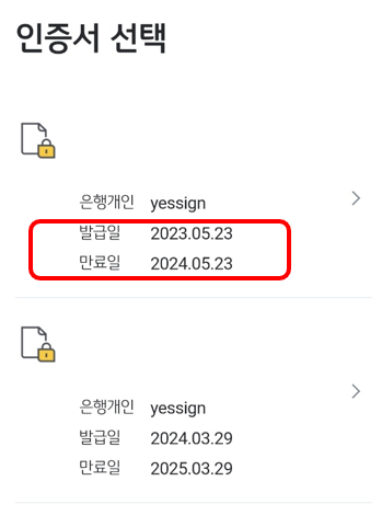 인증서를 타 은행에서 발급받으니 제가 원했던 것처럼 유효기간이 늘어나게 되었습니다.