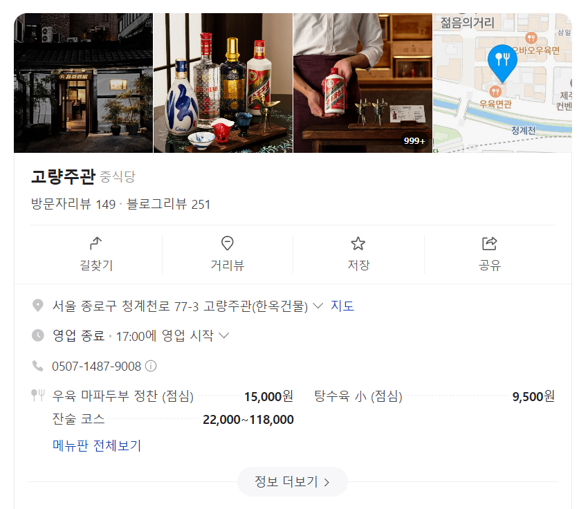 고량주관은 서울 종로구 청계천로 77-3에 위치한 식당인데요. 유명한 우육면관 뒤에 자리하고 있습니다.