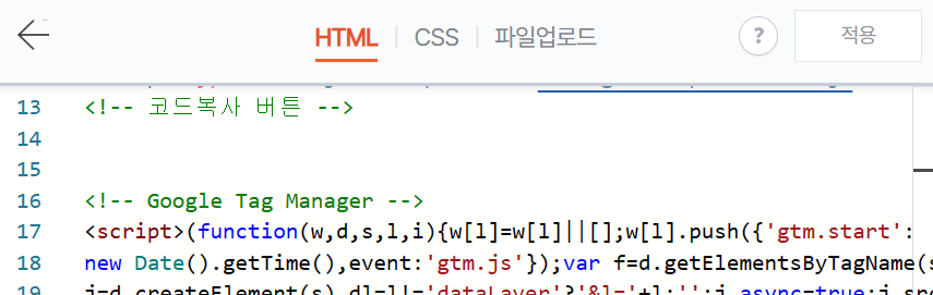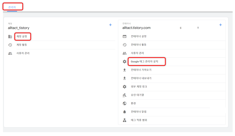 관리자 - 계정 설정 - google 태그 관리자 설치에서 태그를 설치하면 된다고 합니다.