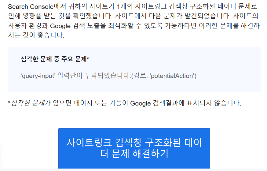 갑자기 구글 서치콘솔에서 query-input 입력란이 누락되었다는 메시지가 발송되었습니다.