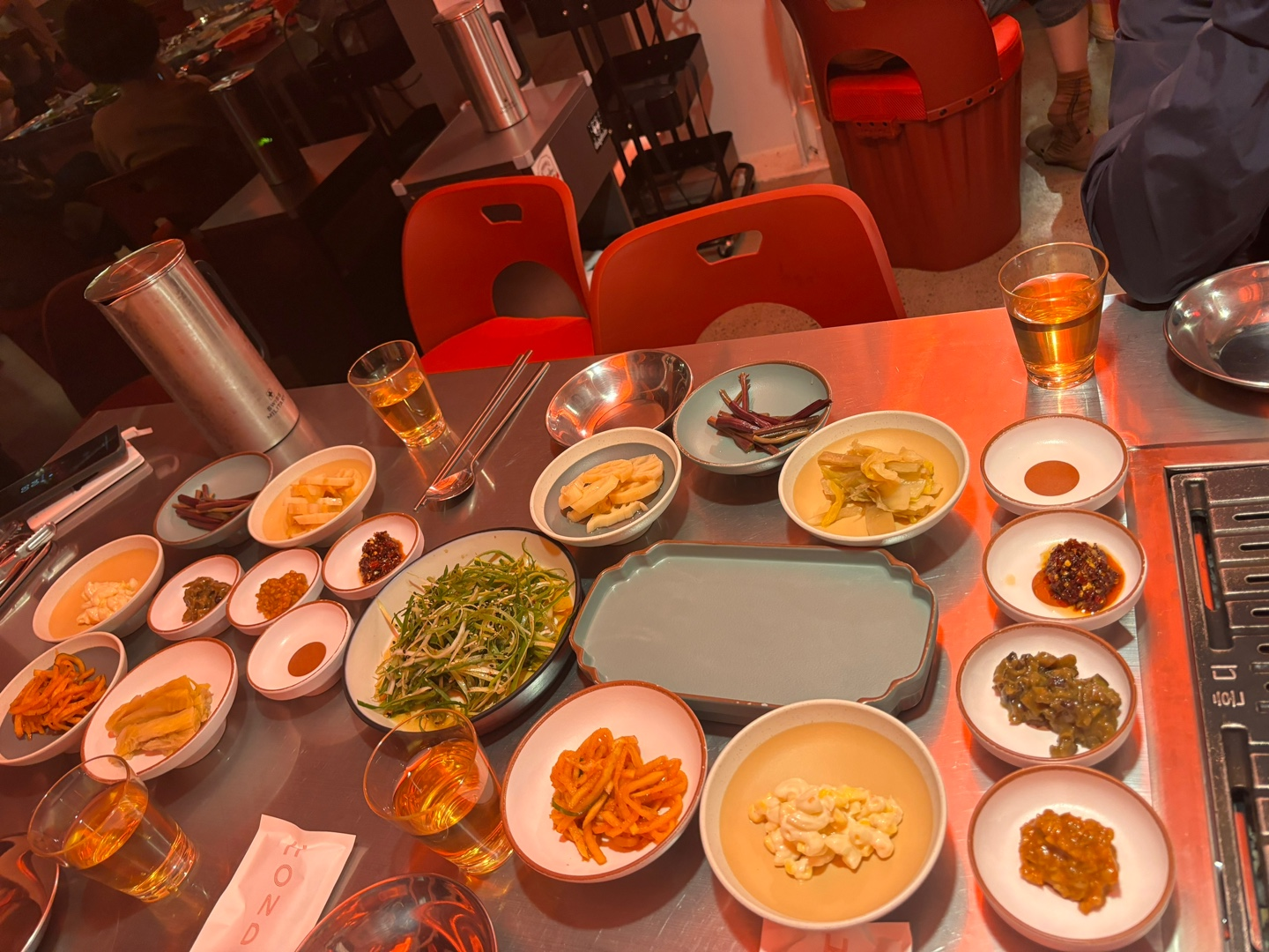 주문하면 많은 기본찬이 세팅됩니다.