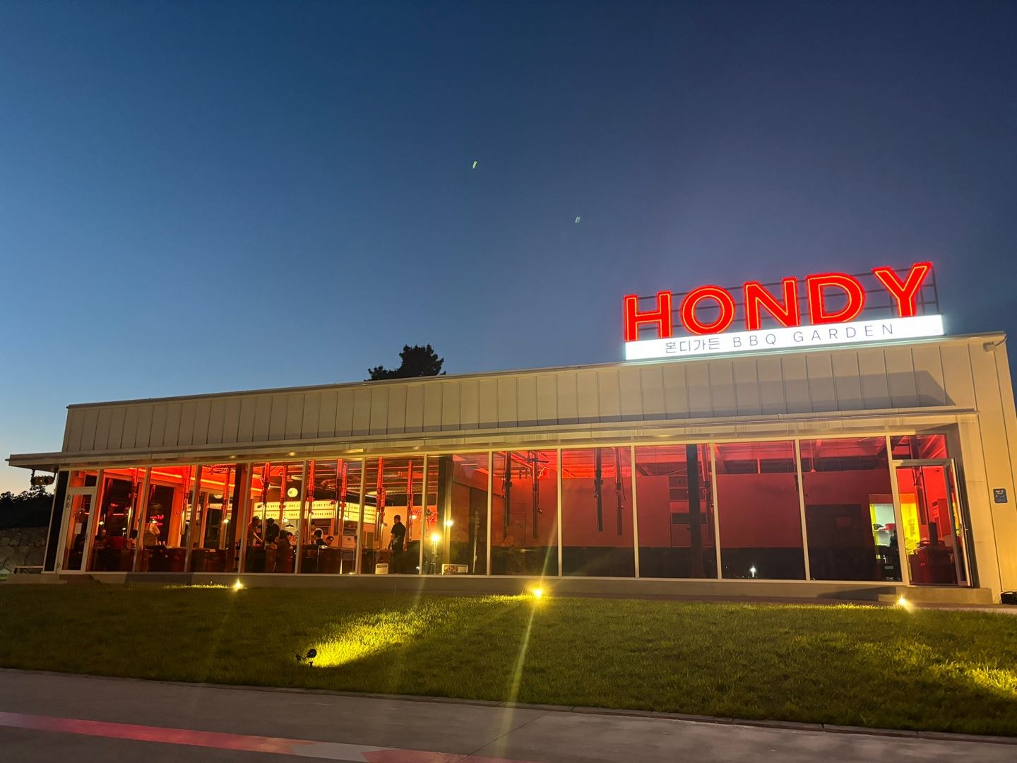외부에서도 독특한 조명이 반겨줍니다.