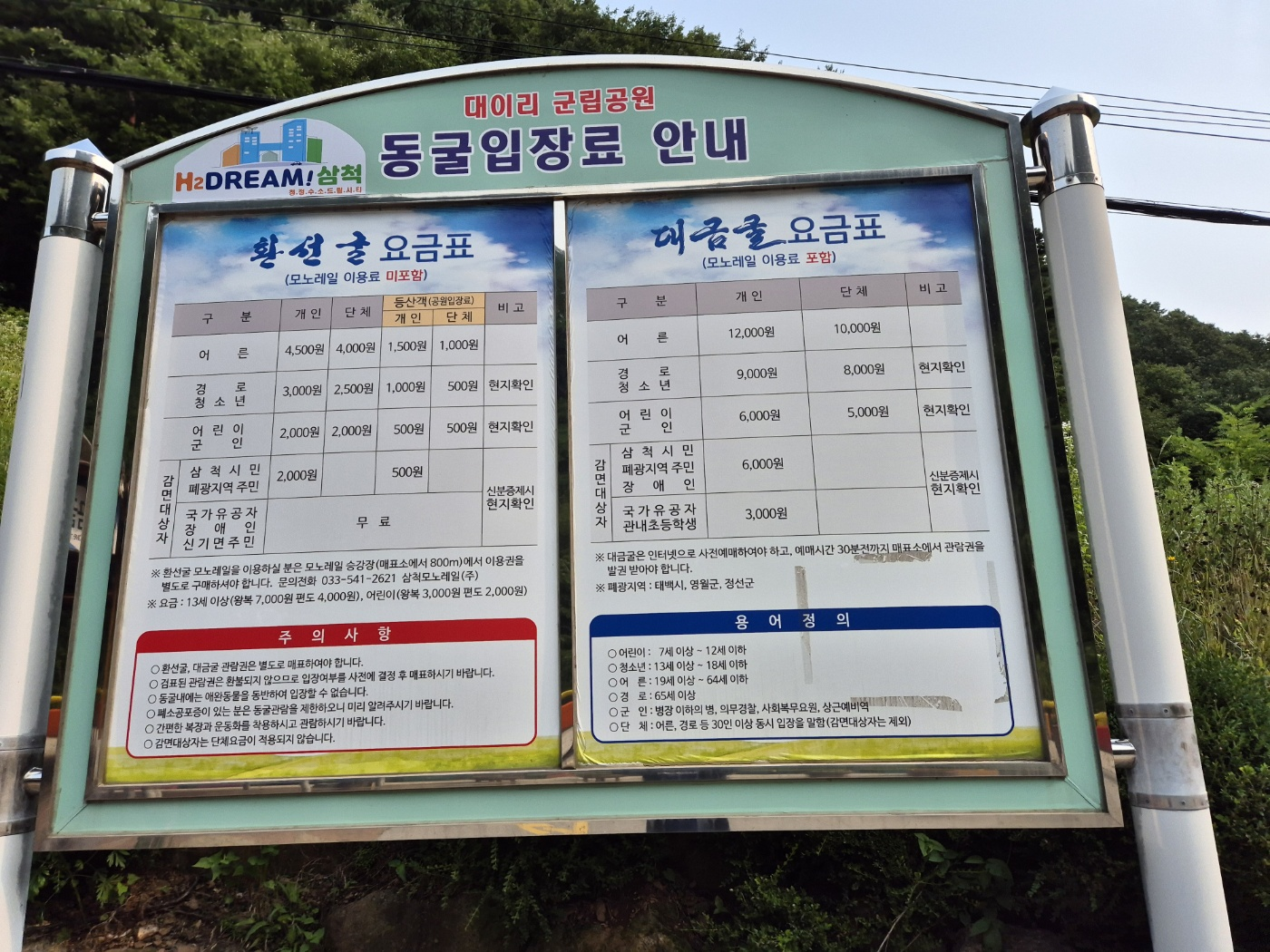 대금굴은 별도의 주차 요금은 없고, 입장료는 개인 12000원, 어린이 6000원입니다.