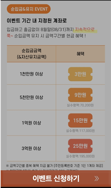 목돈을 입금하면 돈을 주는 이벤트인데요.