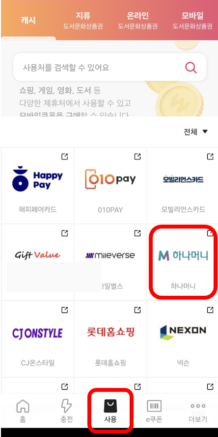 북앤라이프 앱에서 사용 - 캐시 - 하나머니로 들어가시면 됩니다.
