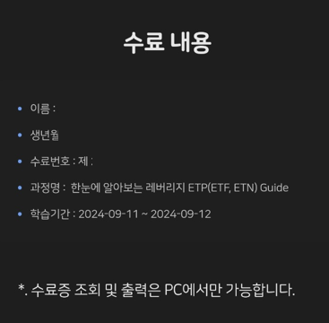 이 수료번호를 각 증권사의 교육이수 등록에 등록하시면 됩니다.