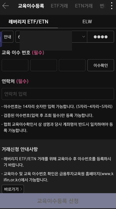 키움증권의 경우 교육이수등록 - 레버리지 ETF/ETN 메뉴에서 확인하실 수 있습니다.