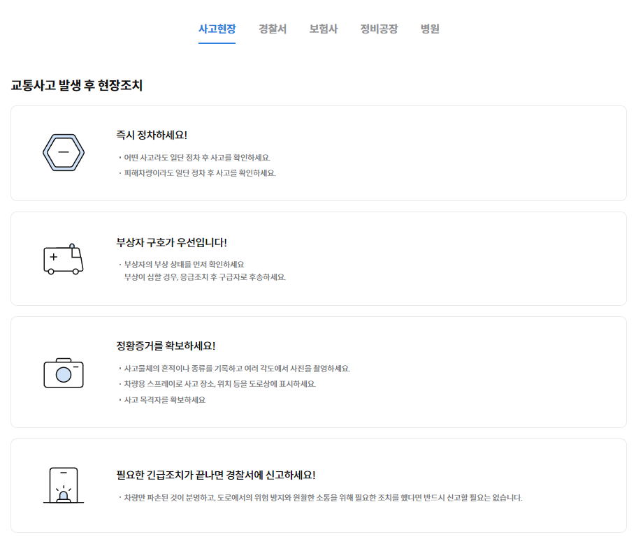 교통사고 발생시 이러한 점을 당황하지 않고 천천히 처리하시면서 해결하시기 바랍니다.