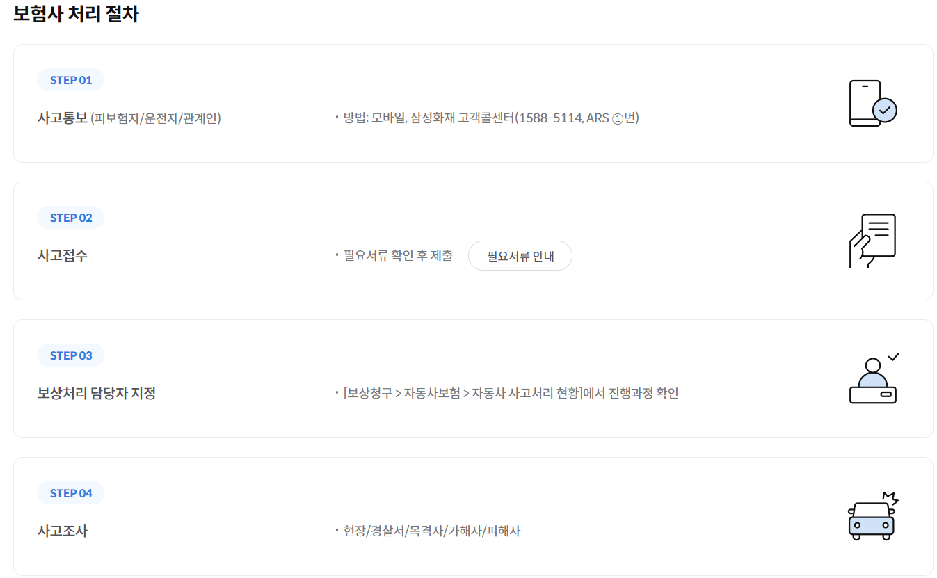 사고를 접수 시 본인확인과 상대방 차량번호, 상대방 연락처 등의 정보를 알려주면 교통사고 접수가 완료됩니다.