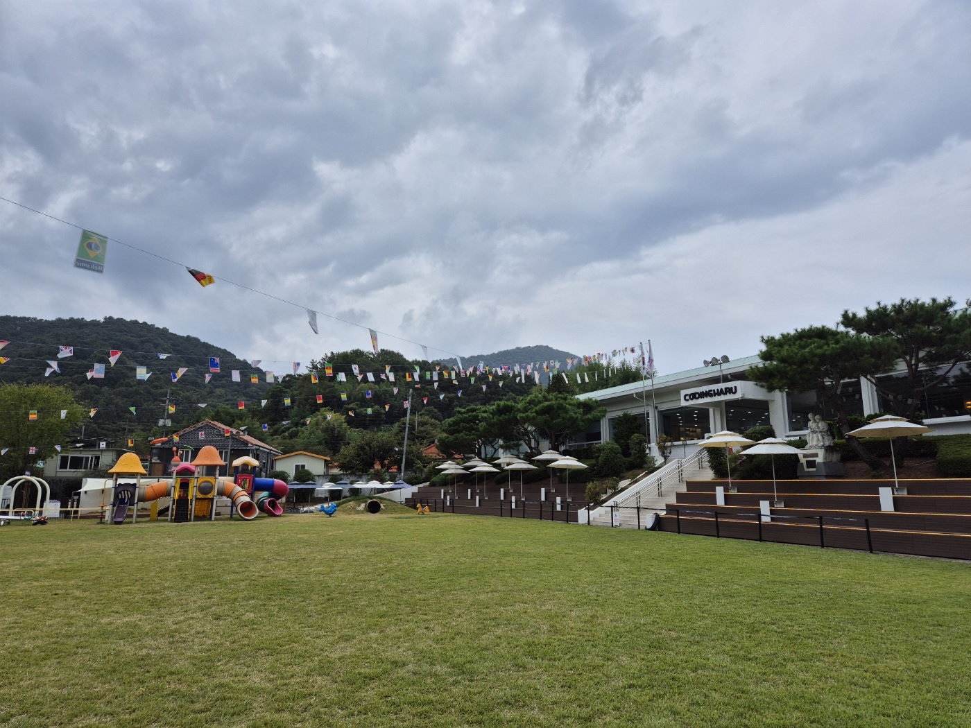 넓은 잔디밭에 다양한 놀이기구도 있고, 카페가 위치해 있는데요.