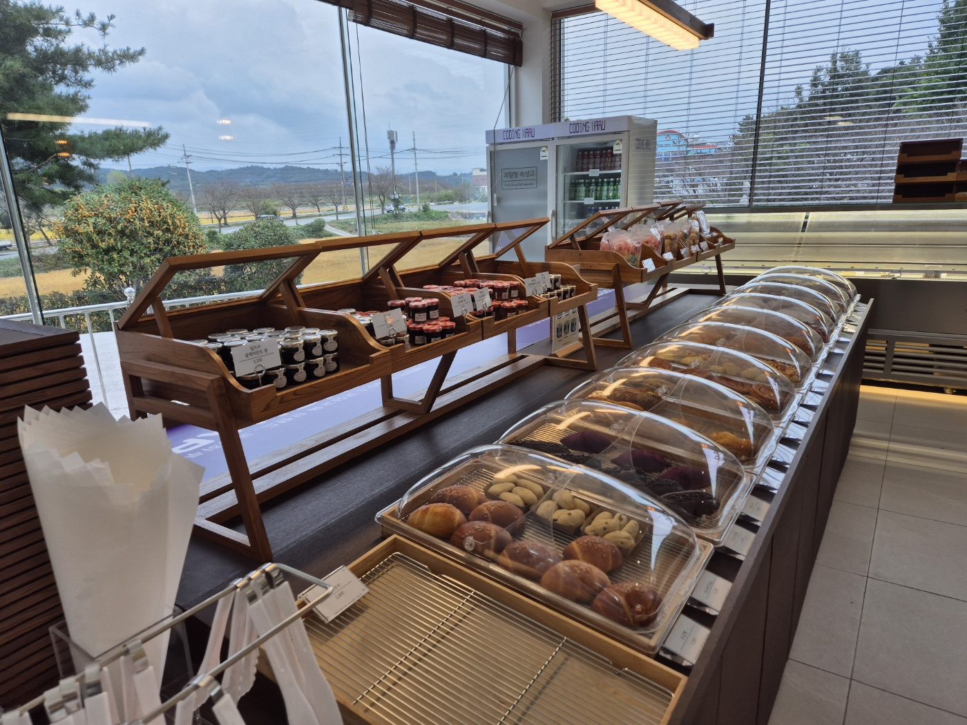 그리고 들어가면 카페와 빵이 준비되어 있는데요. 아메리카노가 5.5천원 수준입니다.