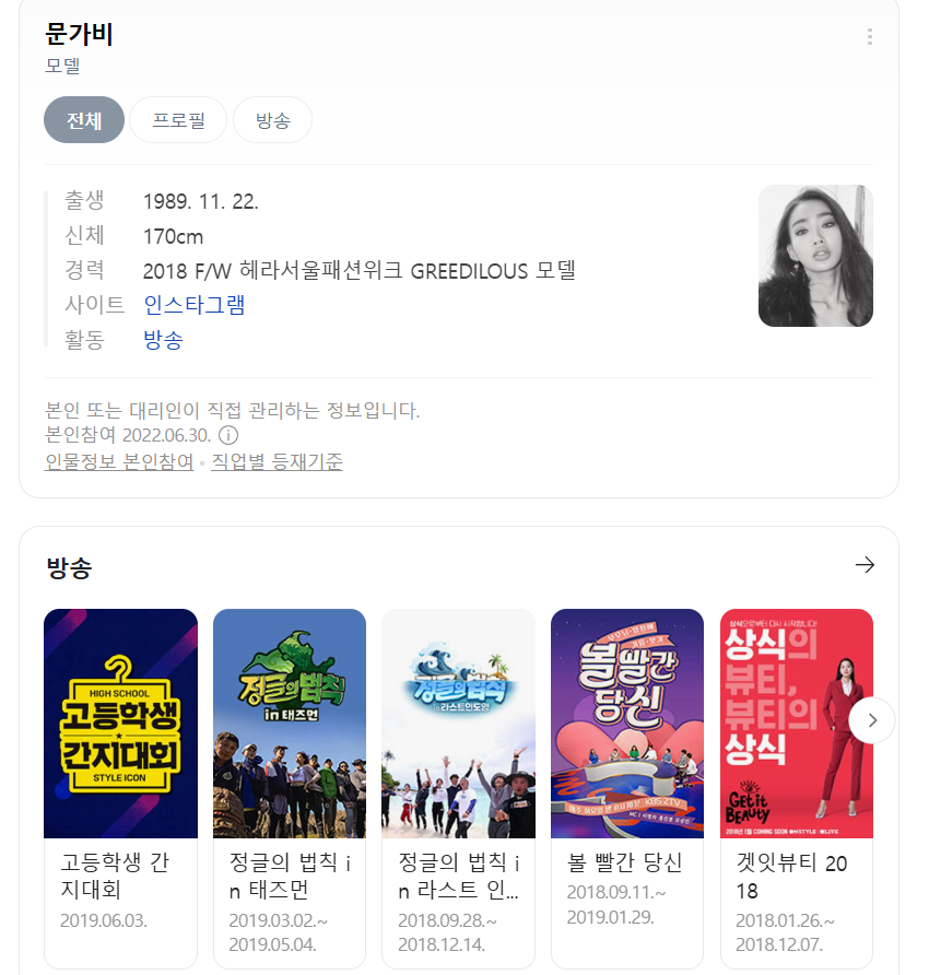 문가비는 1989년 11월 22일 생으로 정글의 법칙, 겟잇뷰티 등에 출연하였습니다.