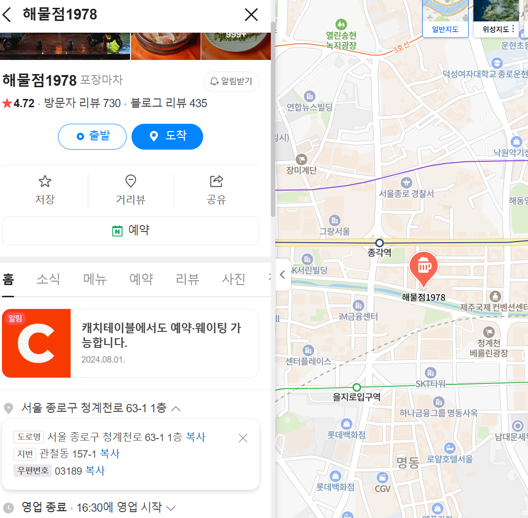 서울 종로구 청계천로 63-1 1층에 위치해있고, 을지로입구역과 종각역에서 멀지 않은 곳에 위치해있습니다.