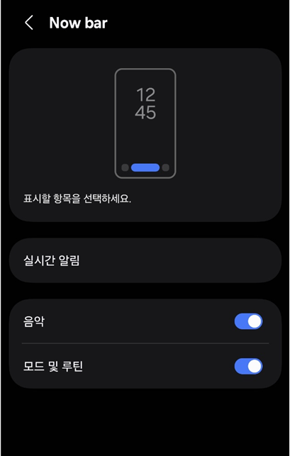 현재 AOD 설정에 추가된 Now bar에서 수정하면 되는데요.