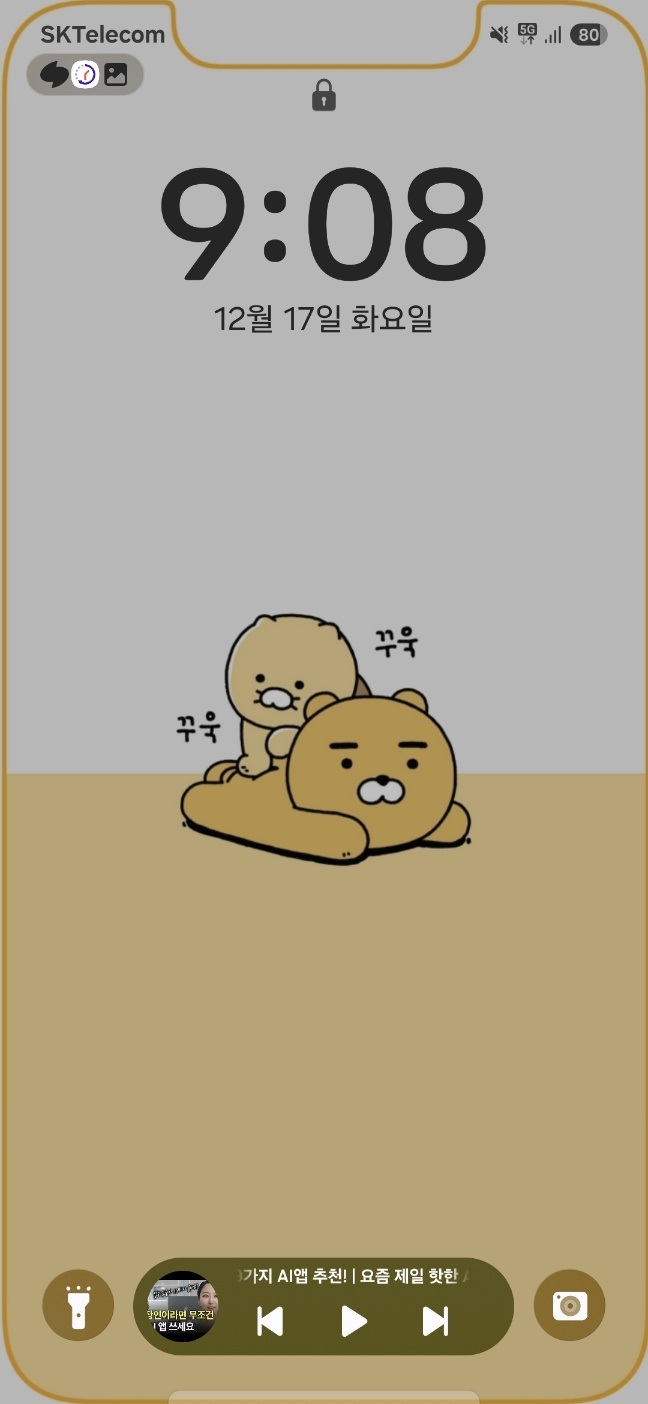 이번 다양한 UI가 업데이트 되었는데요. 그 중에서 나우바라고 해서 현재 보고 있는 콘텐츠를 잠금화면 하단에서 바로 확인할 수 있습니다.