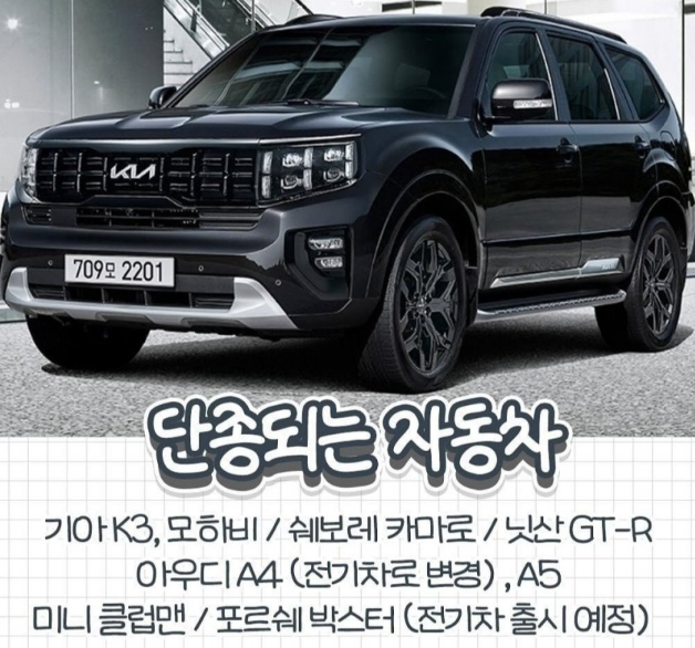 기아 K3, 모하비, 쉐보레 카마로, 닛산 GR-R 등이 단종된다고 합니다.