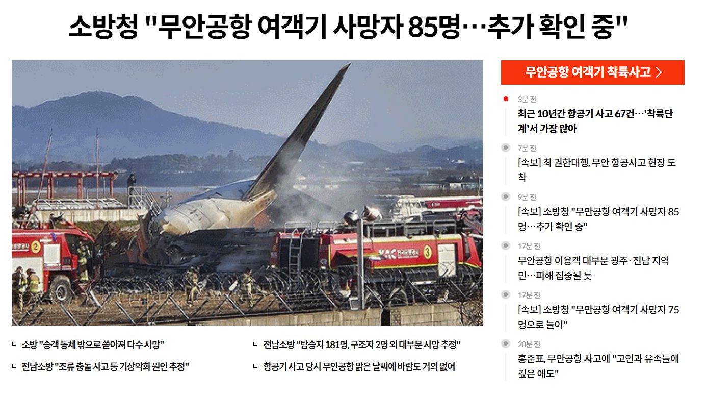 무안국제공항에서 비행기 충돌 사고가 발생했습니다. 전남 무안국제공항에서 탑승객 181명을 태운 여객기가 착륙 중 추락한 것인데요.