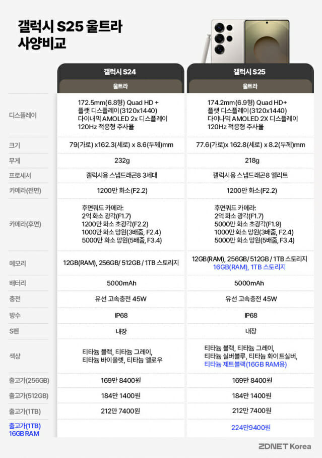 갤럭시 S25와 전작인 S24와 비교한 것이 올라왔습니다. 갤럭시S25 시리즈는 역대 시리즈 중에서 디자인, 애플리케이션 프로세서(AP) 성능, AI 기능 등 전반적으로 변화를 준 제품으로 꼽히고 있는데요. 그럼에도 가격은 전작과 동일하게 책정됐다는 점에서 업계에 주목을 받고 있습니다.