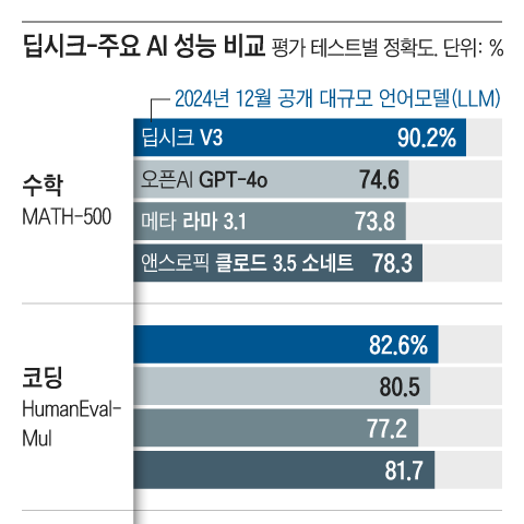 딥시크는 지난 20일 자신들이 개발한 추론 특화 모델 ‘딥시크-R1’을 출시하고 “오픈AI의 추론 모델 ‘o1’과 동등한 성능을 가졌다”고 공개했습니다. 딥시크는 지난달 오픈AI의 ‘GPT-4o’와 비슷한 성능을 지닌 ‘딥시크-V3’를 출시하고 이를 오픈소스로 공개했는데, R1 역시 누구나 소스 코드를 열람하고 수정·배포할 수 있는 오픈소스로 공개한 것입니다.