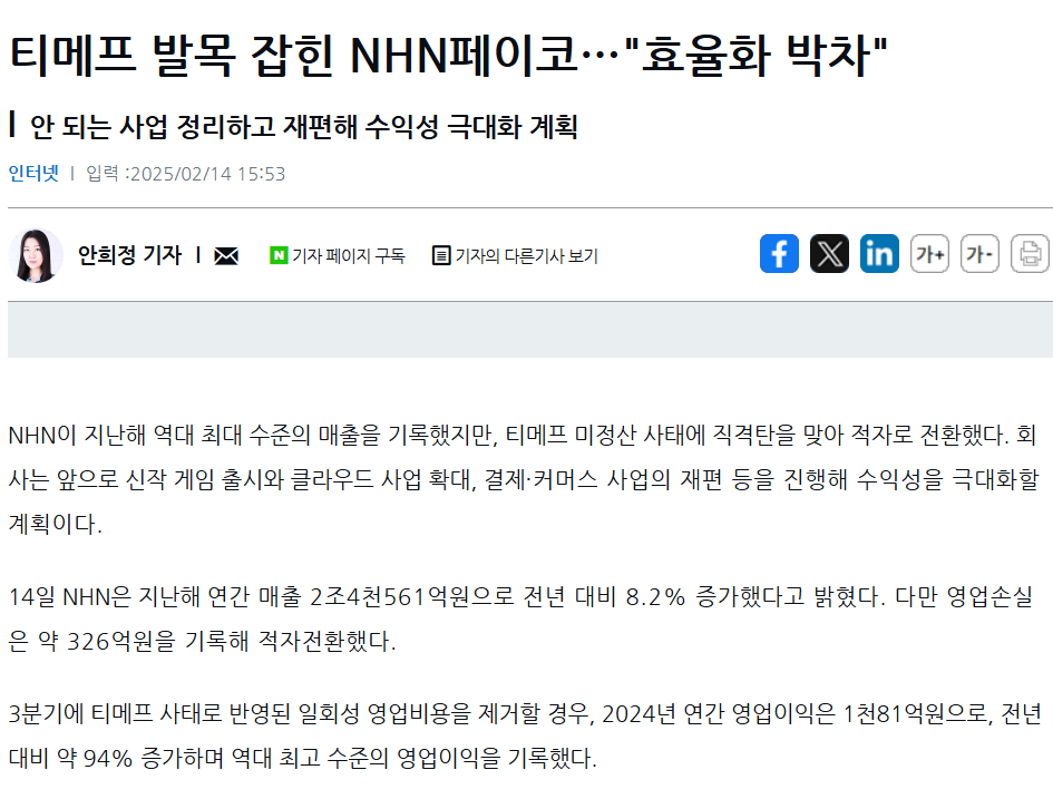 실제로 페이코는 매출이 2조 4천 561억으로 전년대비 8.2% 증가했으나, 페이코 사태로 인하여 영업손실이 326억이 발생했다고 합니다. 페이코가 없었더라면 영업이익은 1천 81억이 되었을 것이라고 합니다.