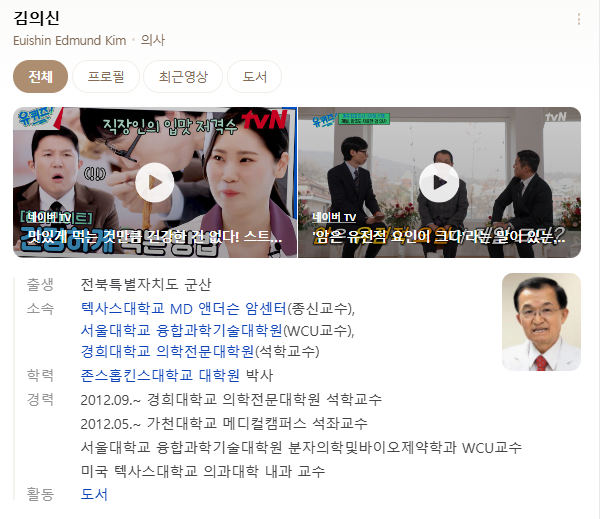 김 박사는 19일 방송된 tvN의 '유 퀴즈 온 더 블럭'(유퀴즈)에서 출연하였습니다. 대중들에게 김 박사는 이병철 회장의 간암 치료를 담당한 것으로 유명하기도 합니다. 그는 "이 회장님이 '암만 고치면 전 재산의 반을 기증하겠다'라고 말씀하셨다. 돈을 아무리 많이 벌고 성공해 명예를 얻어도 건강하지 못하면 아무 소용이 없다"고 강조했습니다.