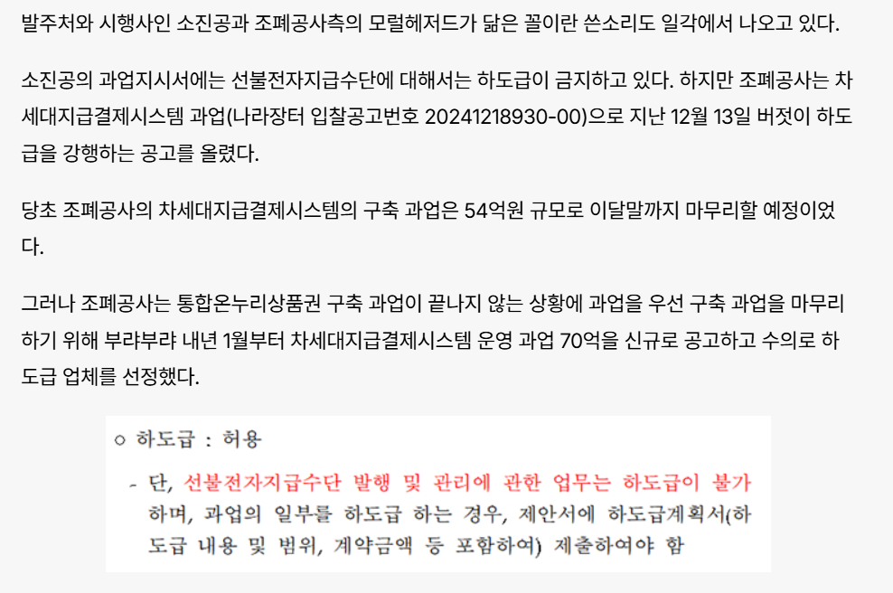 문제는 조폐공사가 선불전자지급수단 발행 및 관리에 대한 역량이 없다는 것이 처음부터 문제였습니다.