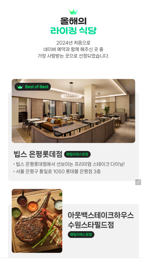 [2024 어워즈🏆] 식당 예약 어워즈 선정을 축하합니다!