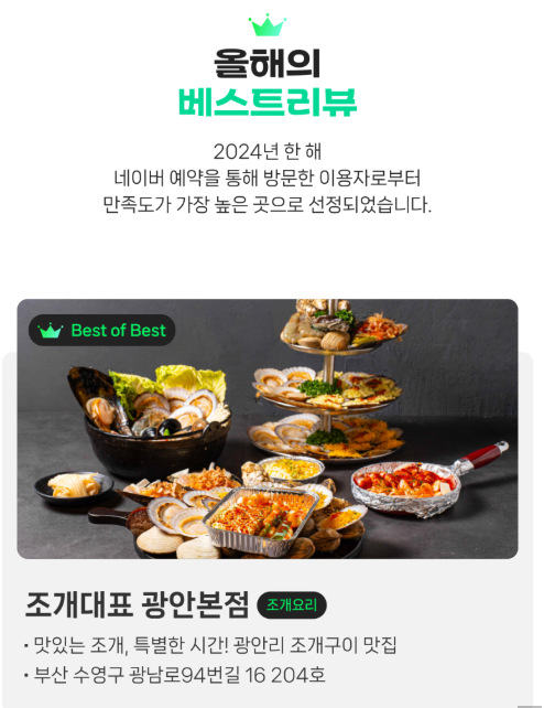 1위는 조개대표 광안본점입니다.