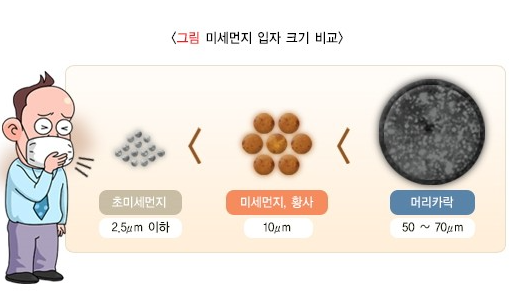 황사의 경우 입자 크기만 보면 미세먼지와 유사한 아주 작은 토양 입자 알갱이로 1~1천㎛(1㎛는 100만분의 1m) 수준인데요. 미세먼지는 지름이 10㎛보다 작으며 2.5㎛보다 작은 초미세먼지도 있습니다.