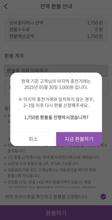선불이 아니라 후불 교통카드로 사용하고 싶다면 선불 교통카드를 후불로 전환하시면 되는데요. 이 때에는 기존에 충전한 것을 환불하고 진행이 됩니다.