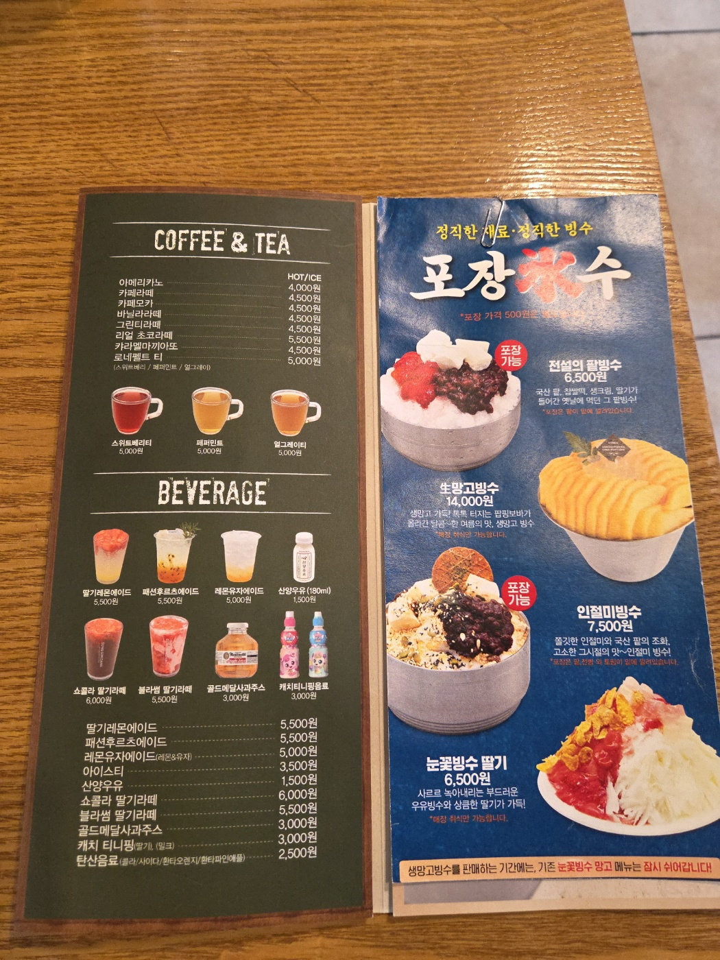 빙수는 전설의 빙수와 생망고빙수가 핫한데요.