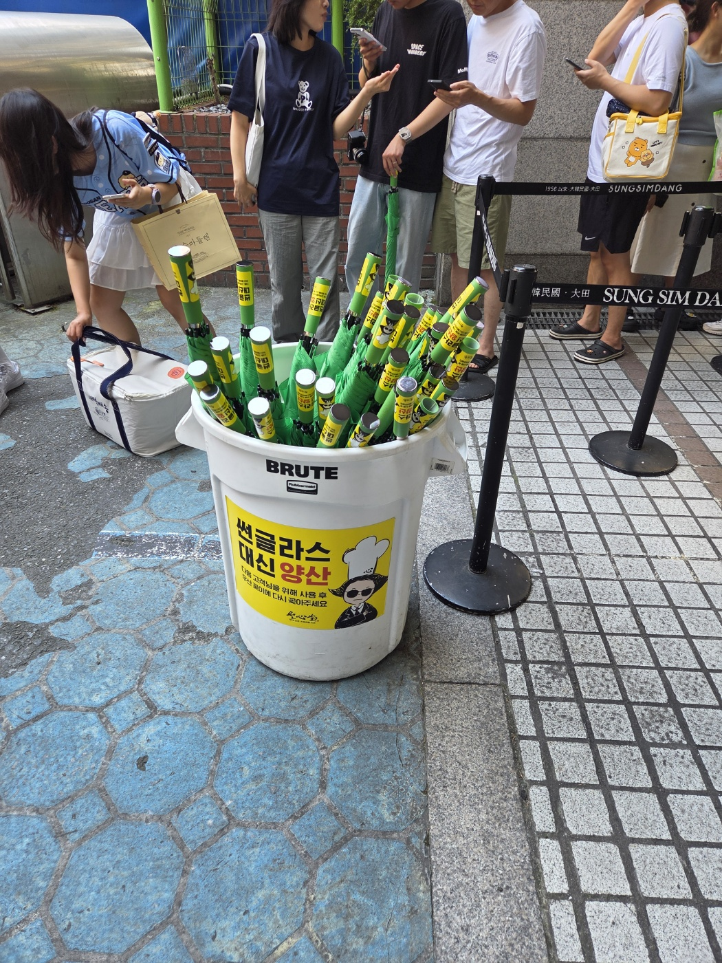 성심당 대기열이 워낙커서 아래에 양산을 제공하고 있습니다. 더운날씨에 양산을 쓰면 그나마 좀 낫더라구요.